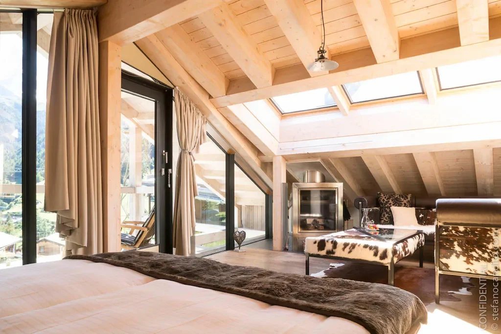 Každý pokoj je promyšlený do posledního detailu. Moderní nábytek, měkké textury a velká okna, která dělají z hor živé plátno. Některé pokoje mají střešní okna, takže můžete pozorovat hvězdy přímo z postele.